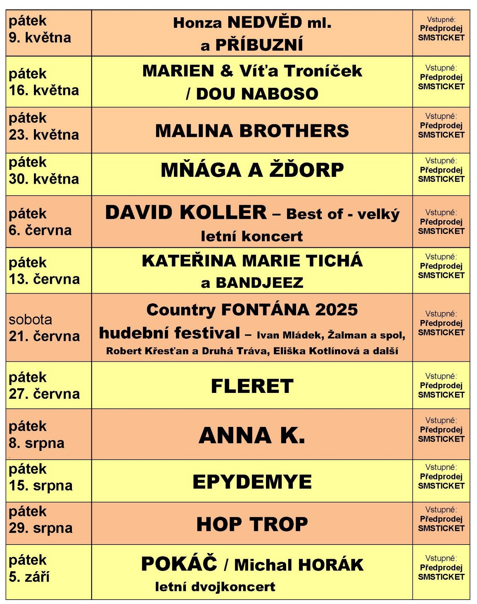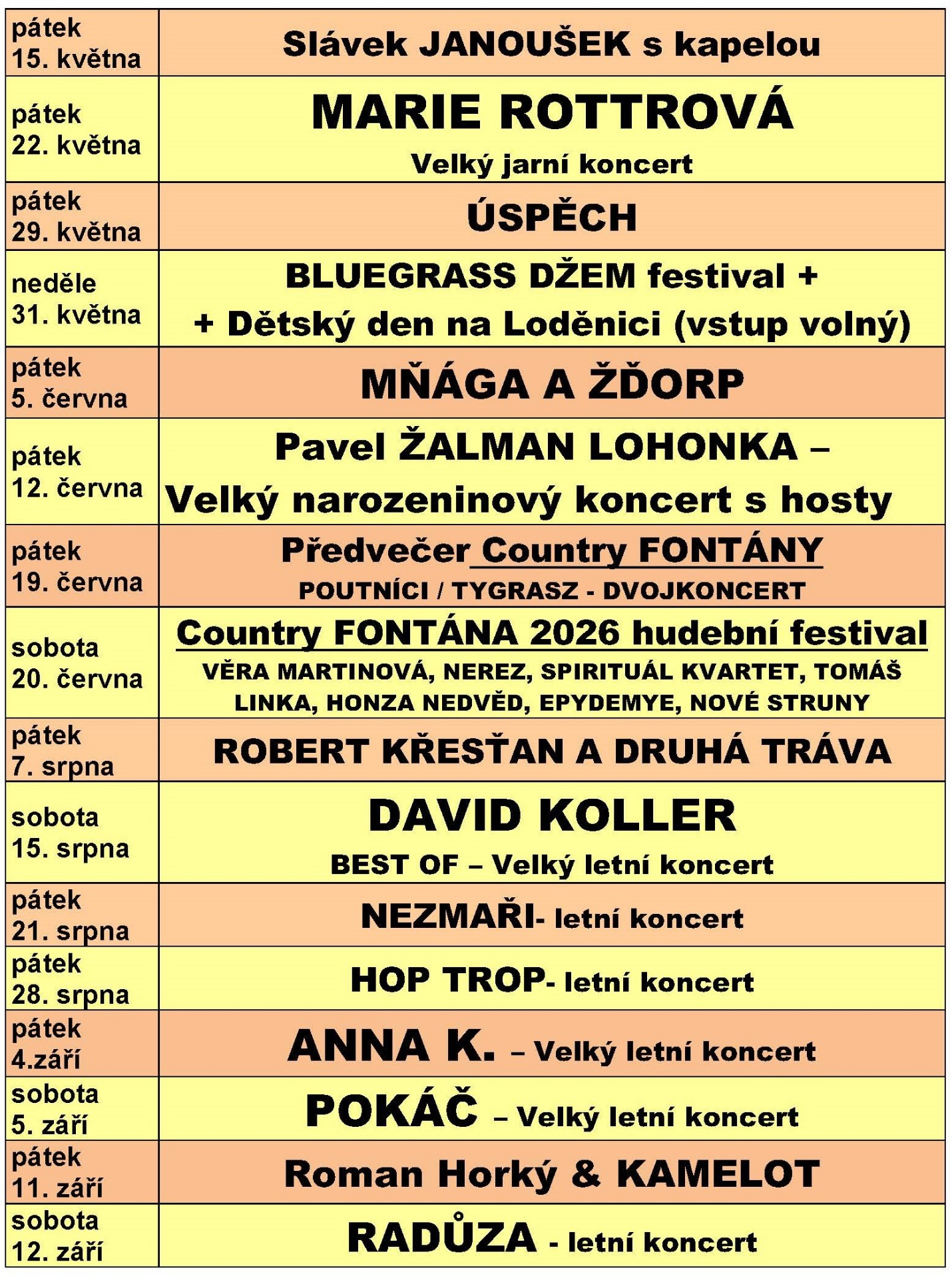Koncerty se vstupným se konají za každého počasí.